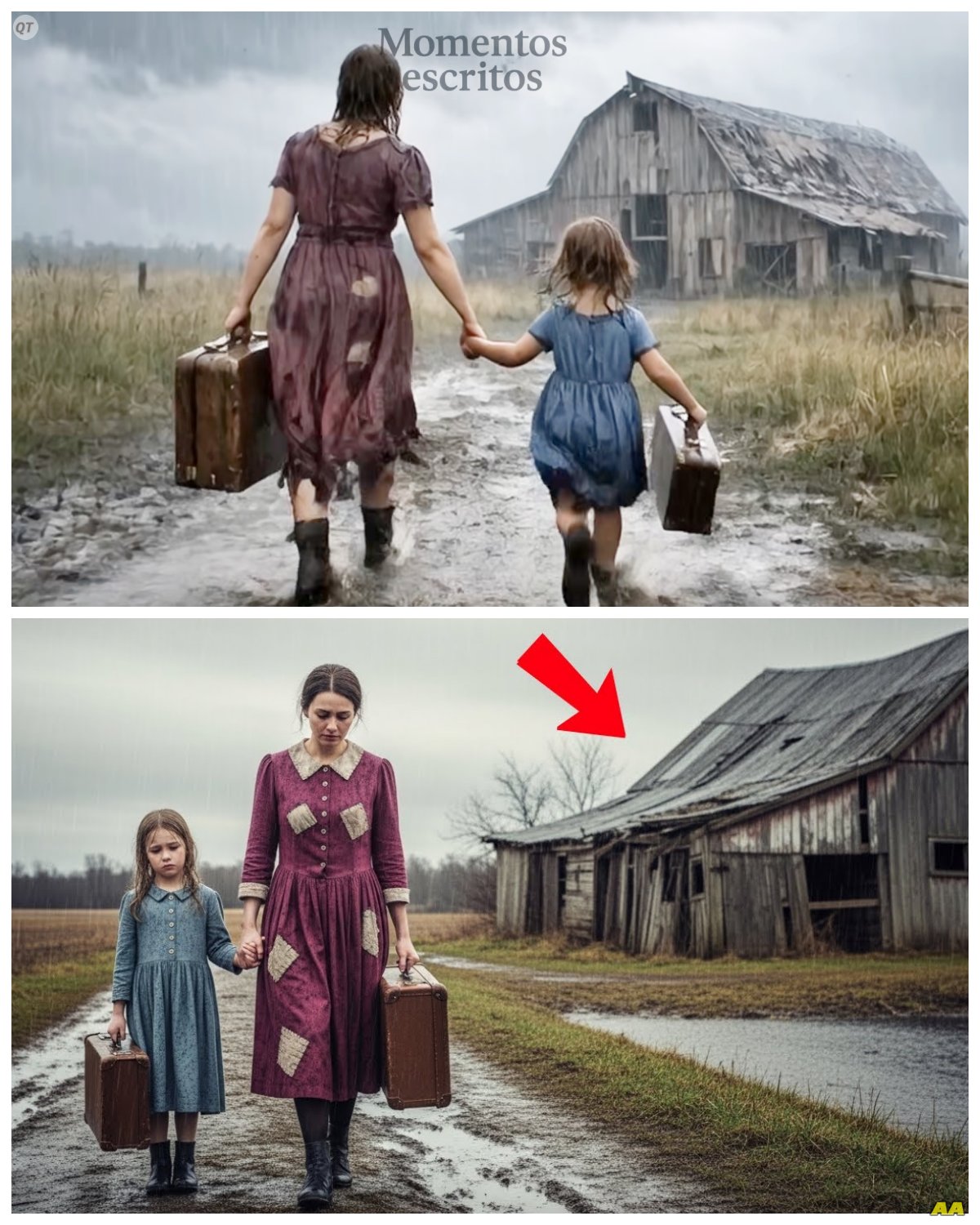 Encontró refugio en un granero que parecía abandonado hasta que había caminado bajo la lluvia durante horas con su hija temblando de frío a su lado cuando vio ese granero viejo al final del camino de tierra.